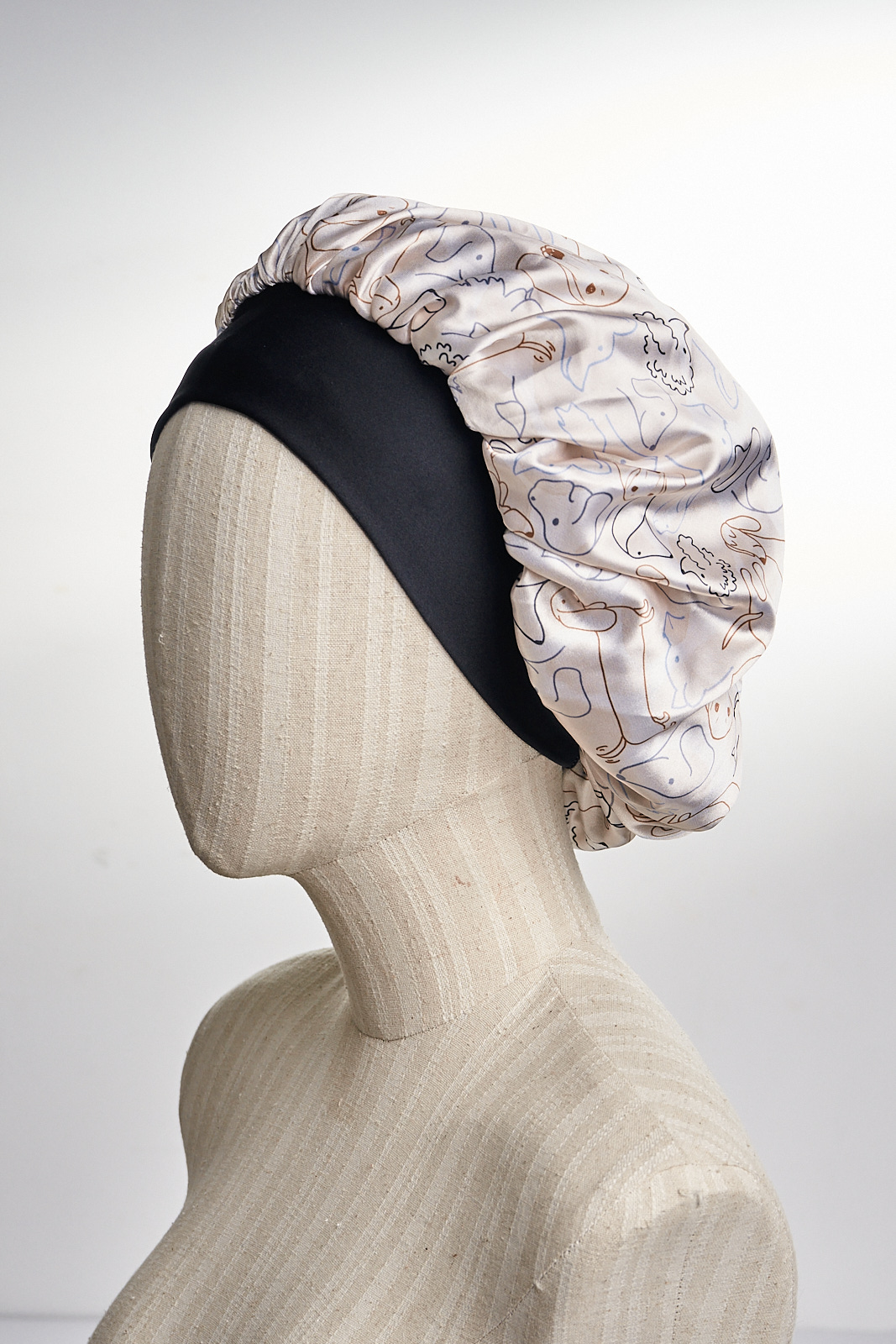 Gorro de satín doble faz diseñado especialmente para proteger tu cabello al dormir, conservar la definición, hidratación y forma. Cuenta con un diseño diferente en cada lado para que lo puedas usar por el lado que quieras y cambies de estilo cada noche, además tiene un sistema de ajuste tradicional con la medida ideal para que no te aprete y sea muy cómodo.